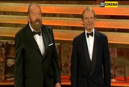 Para relembrar separei duas cenas do filme Dupla Explosiva com Bud Spencer e Terence Hill na década de 70 e por último um vídeo bem recente onde os dois atores receberam o prêmio máximo da Academia de Cinema Italiano, David di Donatello 2010, o Oscar do cinema italiano. Dá para ver emoção no rosto de Terence Hill. Confira!